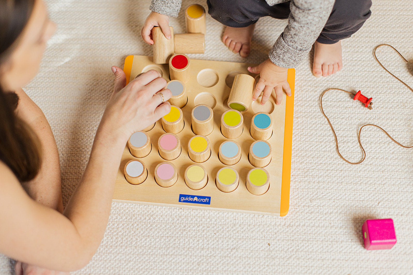 - Block Play: Play with the pieces first without the base. Build a tower and knock it down!